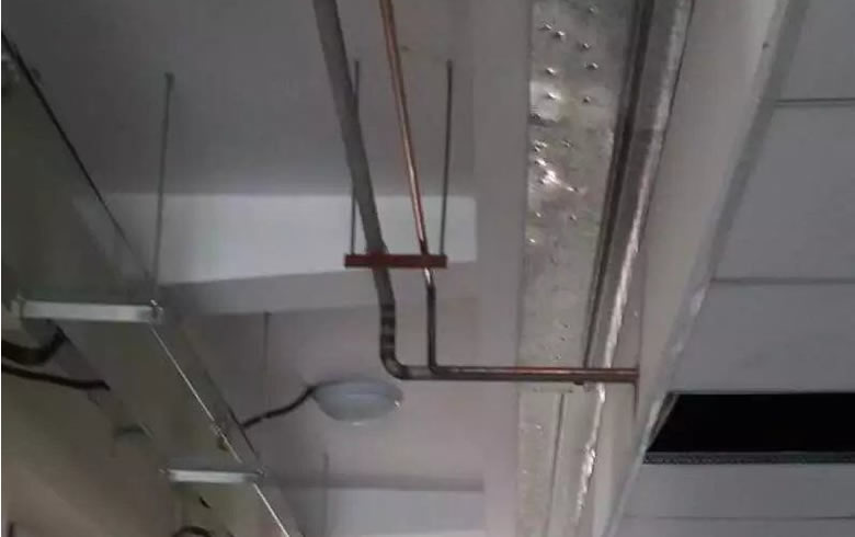 3、氧气输送管道:氧气输送管道连接氧源及各终端,供氧管道在各个用气点的吊顶内安装,干管安装在独立的管井内。管路的布设应避开柱子,主管道经气体管井至走廊支管去病房,走廊支管布置在吊顶内。各病房的引入管由该层病区吊顶内走廊支管上引出,进入病房至治疗带前部分管道用PVC线槽扣住,起到保护管路及美观的效果。管道穿越楼板或墙壁时应加套管,套管直径比管道直径大二个规格。在套管内的管段部分不能有焊缝及连接接头。主管路到达用氧楼层,以最短的设计走向将氧气输送到各个病房、手术室等,并以多种吸氧形式供病人吸氧。氧气管路接地电阻小于100欧姆。