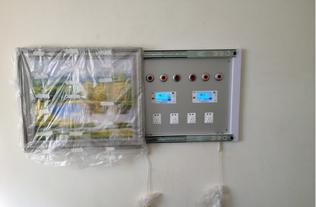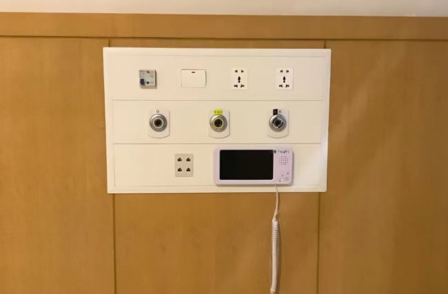 二、嵌入式壁画医用设备带,一种由金属底座固定气体终端和强弱电设备,外部用壁画装饰的医用设备带,主要用于对设备装修要求区别于常规病房的医疗场所,一般用于VIP高级病房,高端医养结合养老院等,尺寸规格和配置可根据需求定做。