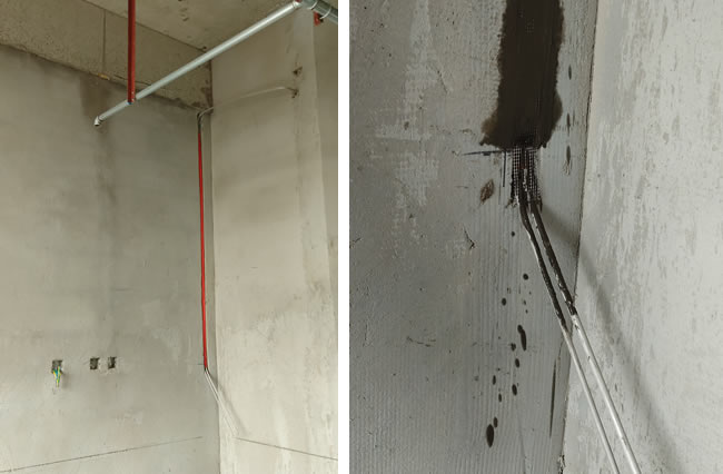 医用中心供氧系统和医用负压吸引系统是常规医院普通病房标准配置的医用气体,此两种气体管道根据规范可选用脱脂铜管和脱脂304不锈钢管,根据医院床位数量规模以及用气量选择不同管径的主管道和分支管道铺设。新建医院病房或改造装修的医院病房的气体管路可分为两种方式铺设,一种的是明管扣槽(一般选用铝合金装饰罩),一种为墙体管道套PVC管预埋。