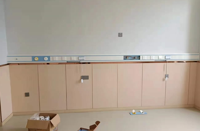 医院病房床头医用气体管道预埋开槽深度30mm左右,宽度60mm左右即可,两根管道分别套两根20mm的PVC管即可。预留高度一般为医疗设备带中间位置,距离地面1350-1450mm的高度。注意电源线和呼叫线、以及网络信号线等需要安装到设备带上的设备线路,也要预留到这个高度。每间病房同面墙体有两张以上床位的时候,管线只需要预留一个点位的即可,其余延长部分可在设备带内变接。