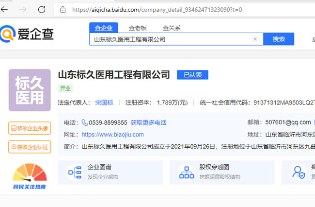 2、通过爱企查网站可以查看其公司是否具有医疗器械经营许可或第二类医疗器械经营备案证,具有以上证件的就符合医疗器械及医用中心供氧系统设备的销售、批发经营权。