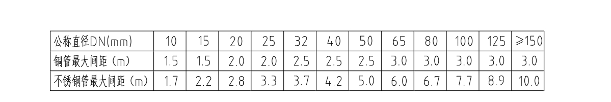 医用气体管道中我们常常会用到医用紫铜管和304不锈钢管,如有甲方要求也可用镀锌钢管。紫铜管管径Φ8~Φ133可供选择,常见的进病房管道用的就是Φ8的紫铜管。不锈钢管管径Φ6~Φ325可供选择。那么我们在医用气体管道工程中,安装前,我们需要核对好项目所需管道管径——管道走向——管道在现场的定位——勘测管路安装路线并确定管路的安装位置——制作、安装管道支架。下图为管道安装表: