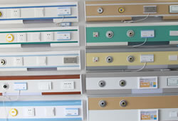 医院医用气体系统工程主要包括医用氧气、医用真空负压吸引、医用压缩空气、医用氮气、医用混合气体等。系统组成主要包括气源站,医用气体管道,管道设备、病房设备带和气体终端等设备。 >>查看设备介绍 | 护理呼叫对讲系统主要由护士站对讲主机、病房床头呼叫器分机、走廊显示屏、卫生间紧急按钮、门口门灯、门口机,系统控制总机等设备组成。医用病房呼叫系统分为智能型和网络信息化型。 | 手术室净化装修工程采用优质洁净板密封搭建,使用新风中央空调机组调节温度、湿度、新风过滤、回风等手段控制室内舒适和洁净度。手术部洁净等级分为5级、6级、7级、8级、8.5级。 |