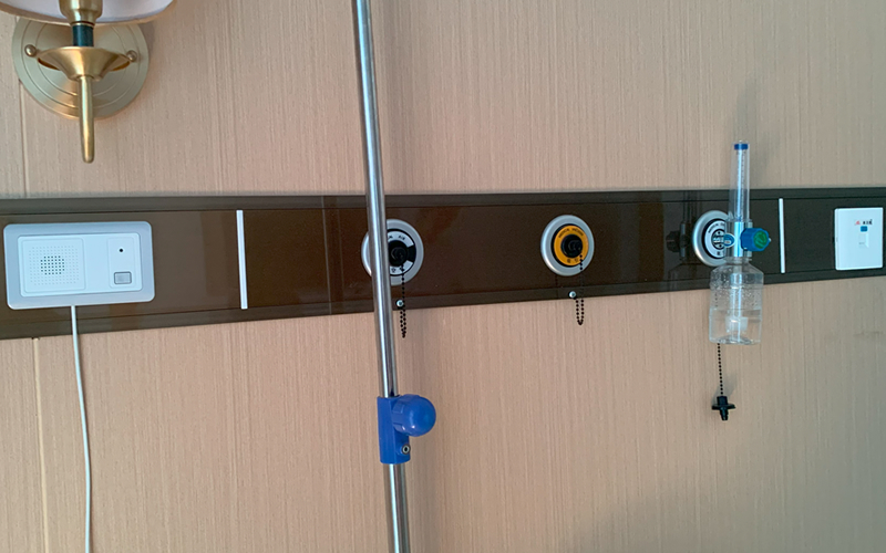 每个床头安装一个呼叫器、一个医用空气终端、一个吸引终端、一个氧气终端、一个网络接口。