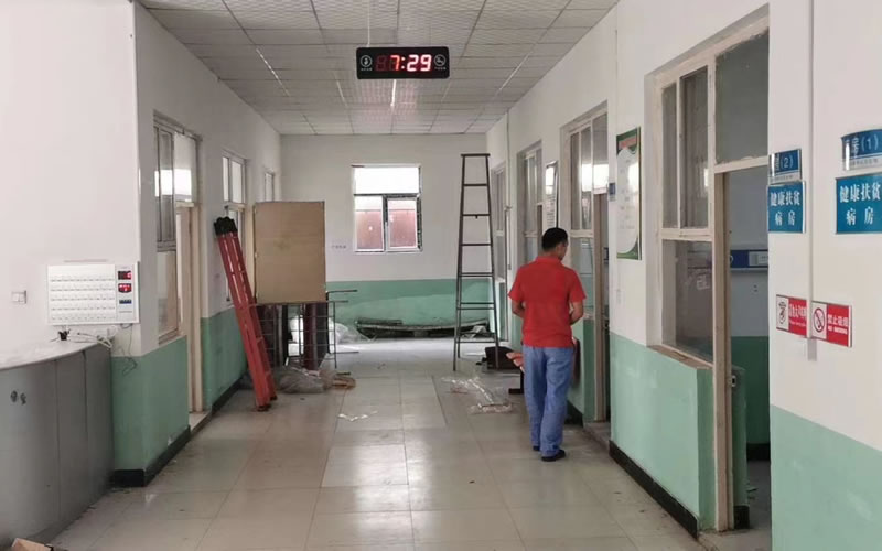 每个楼层护士站设立一个呼叫对讲主机和对讲话机,一个走廊显示屏,一个氧气吸引压力观测声光提醒装置。