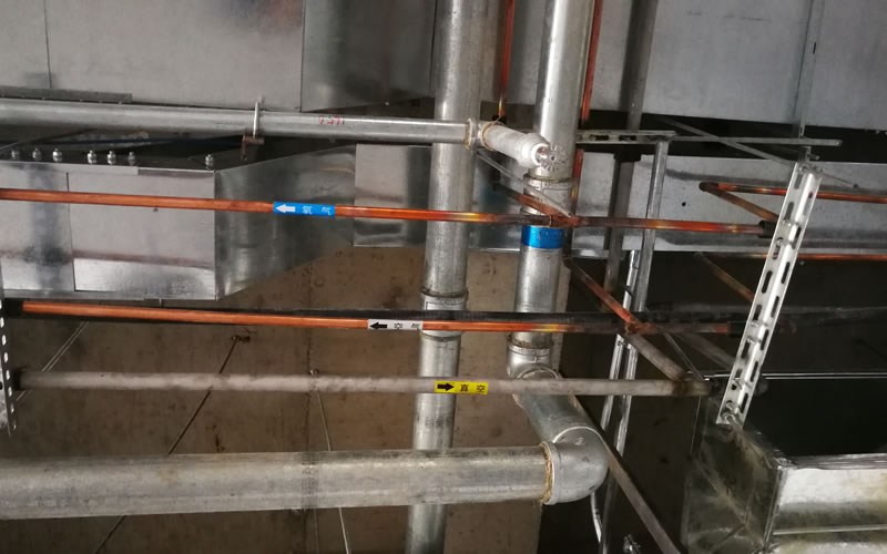 中心真空负压吸引系统管道采用无缝脱脂304不锈钢管,氧气和空气管道采用脱脂无缝紫铜管。