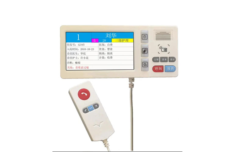 5 寸液晶显示责任医生、责任护士、患者姓名、病情等相关信息;
