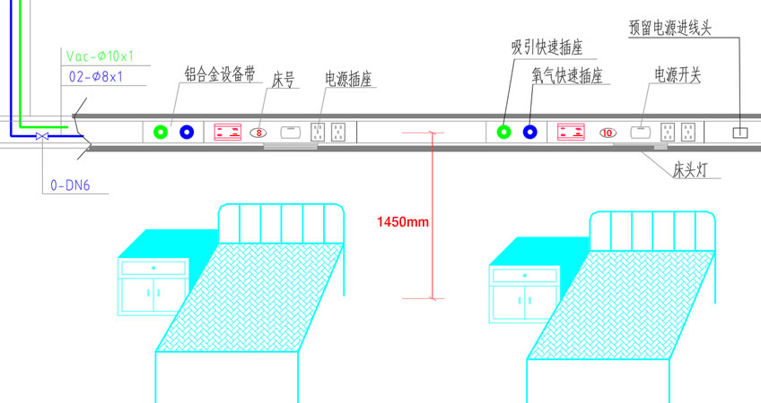病房床头氧气、吸引、呼叫、配电设备带要求: